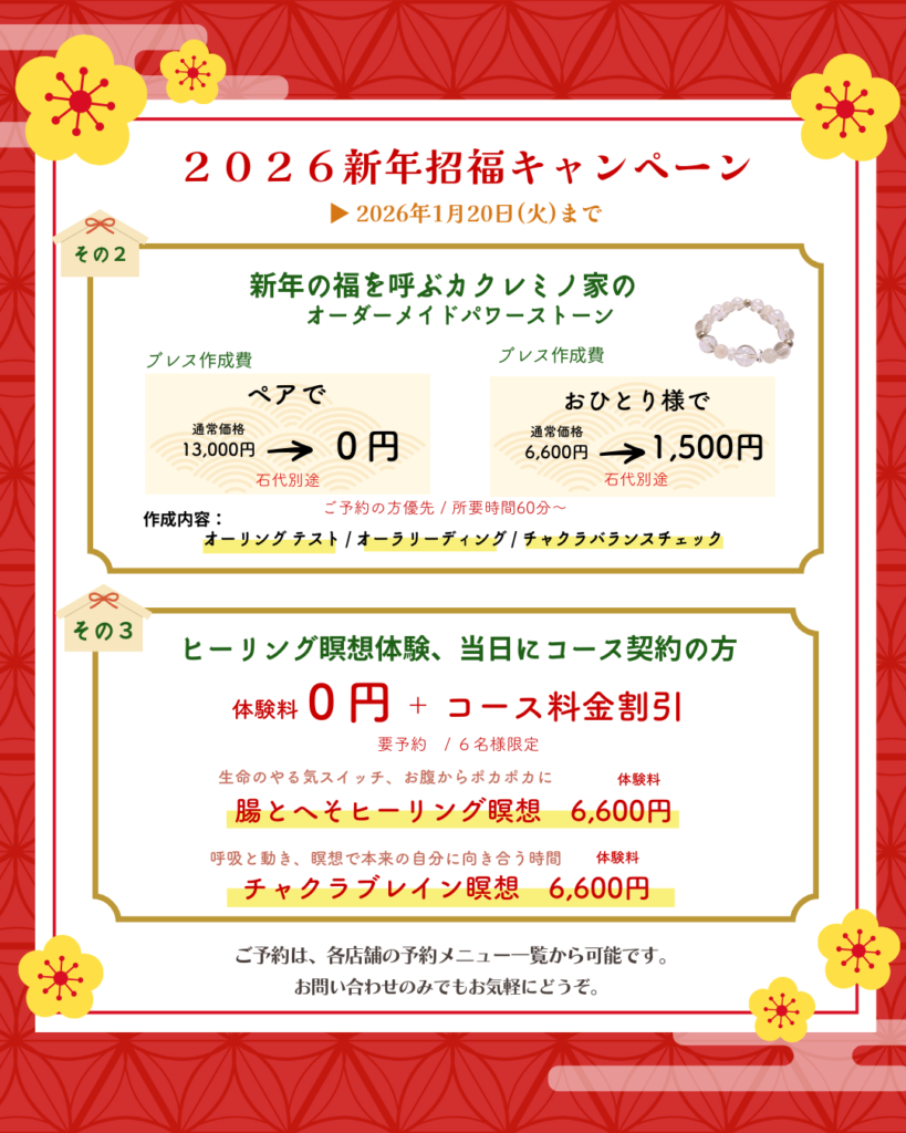 ※ 各 キャンペーンとも1回限りとなります。 また、瞑想体験とブレスレット制作は併用可