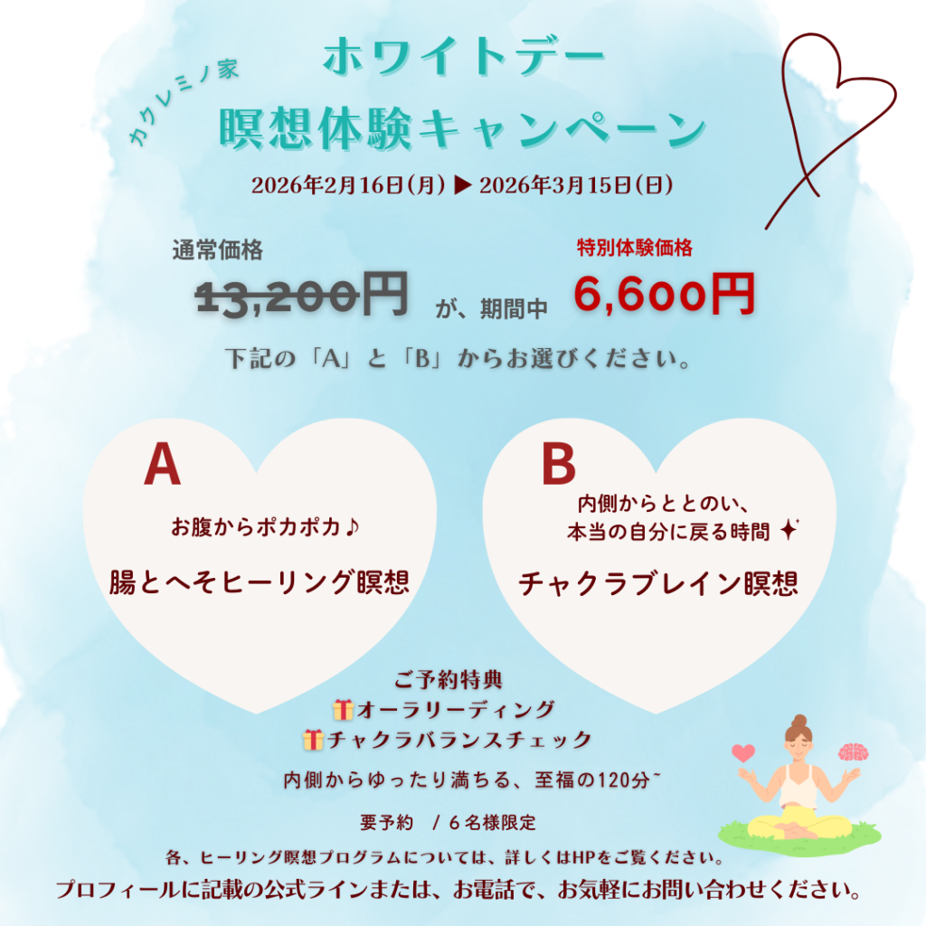 ※ ヒーリング瞑想・瞑想は完全予約制となりますので、前もってご予約ください